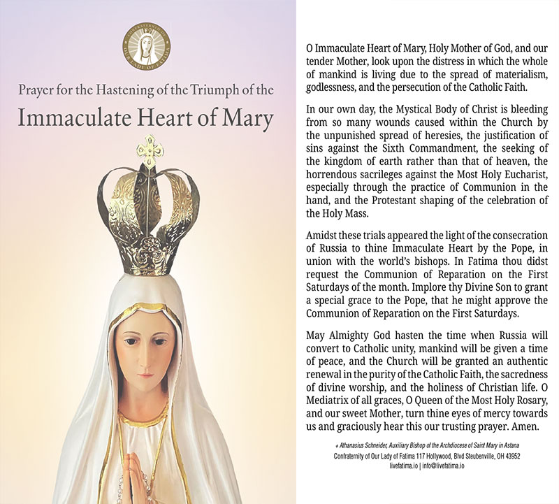Prayer for the Hastening of the Triumph of the Immaculate Heart of Mary